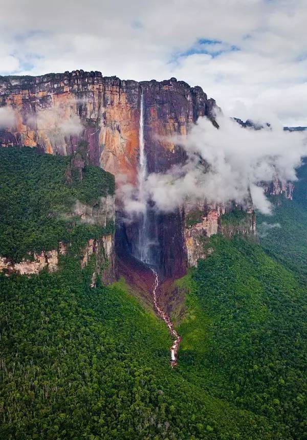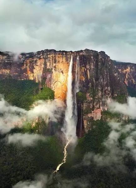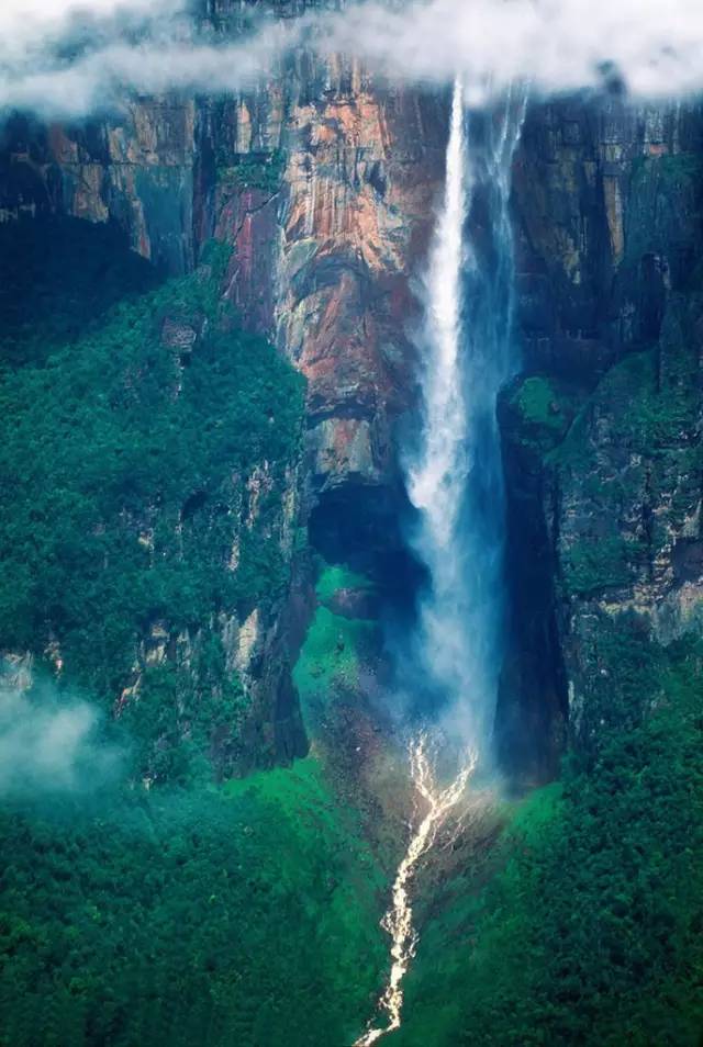 Angel Falls (Venezuela) Angel Falls is the world's largest waterfall in terms of drop, with the waters of the Churon River cascading straight down the sheer walls of the flat-topped plateau of Auyan-tepui Mountain, barely touching the cliffs, with a drop of 979.6 meters, roughly 18 times the height of Niagara Falls. Angel Falls is located on the Churon River, a tributary of the Caroni River, in the Guiana Plateau, Bolivar State, Venezuela. Hidden deep in the dense forests of the highlands of Venezuela and Guyana. The waterfall is divided into two stages,