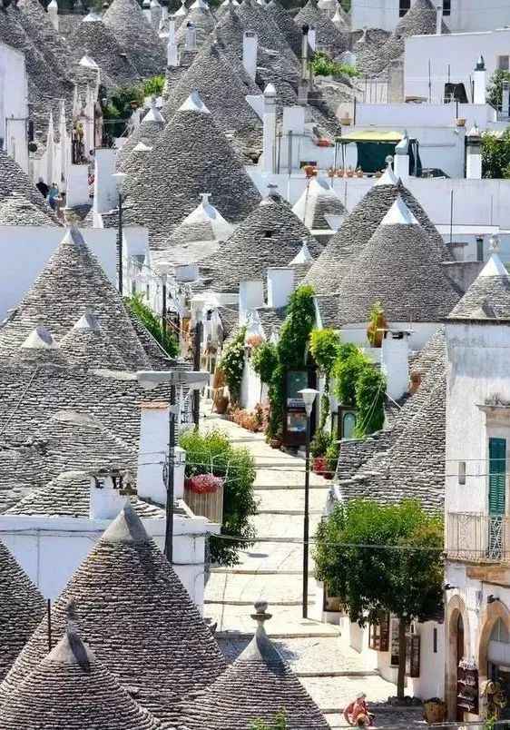 Alberobello in Italy is renowned as the "Heavenly Town". It used to be a barren land with extremely harsh natural conditions. The earliest stone houses can be traced back to the 12th century. In the 16th century, more and more refugees fleeing from natural disasters and man-made calamities came here. They made use of local materials and built houses with limestone. Nowadays, Alberobello preserves more than 1,000 uniquely shaped stone-roofed houses. It can be truly called the "Home of Stone-Roofed Houses" in the world and was listed as a World Heritage Site by UNESCO in 1996.