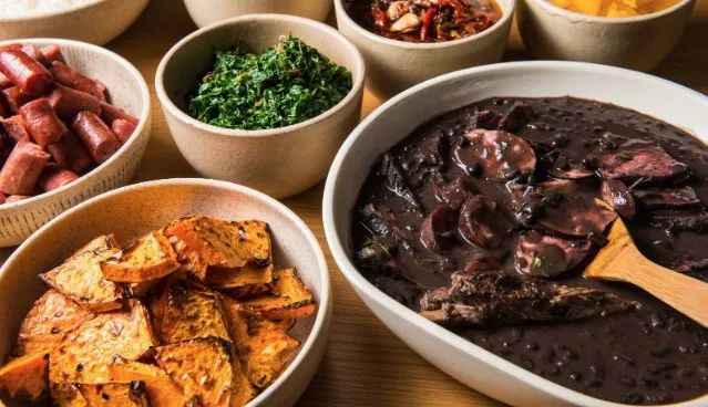 The Brazilian version is a flavorful medley of slow-cooked black beans paired with an array of cured meats: smoked pork, pork 内脏 (offal), linguiça sausage, beef, and dried beef. Vegetables such as tomatoes, carrots, and cabbage are added, reflecting a "what you like, you add" philosophy. Simmered for hours in a ceramic pot, the stew develops a rich, thick consistency, with regional variations using different bean types—black, red, or pinto beans.