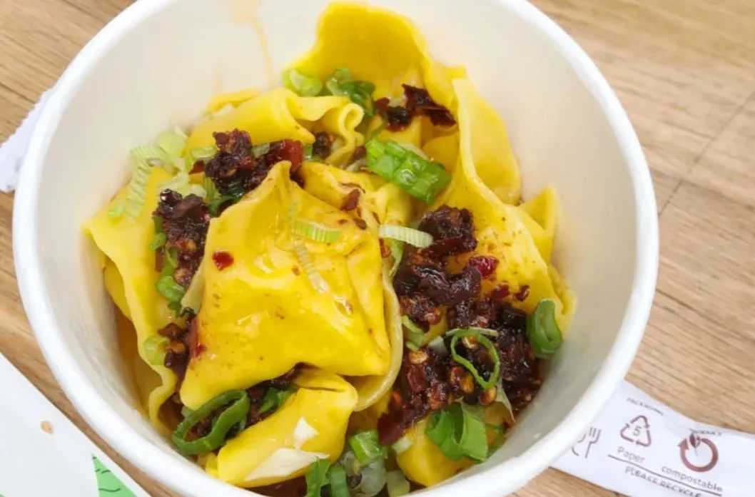 It's right next to the popular pan-fried dumpling store and looks like it's from the same shop. This bowl of red oil wontons is also extremely fragrant, with a filling of shrimp and chives! Just now, you felt like you were in Shanghai having pan-fried dumplings, and in the next moment, you're in Sichuan and Chongqing enjoying red oil wontons! The filling is generous, and it really has a spicy kick!