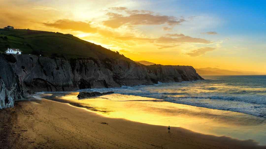 Asturias is known as "the gathering place of the essence of Spain". At sunrise, the eastern horizon is torn by the dawn, and the golden - red light rushes out like a surging tide. On Playa de Portizuelo, the huge waves are like angry beasts, roaring and crashing onto the shore, setting off thousands of piles of white foam. The sea breeze howls past, carrying the majesty and unrestraint of the sea.
