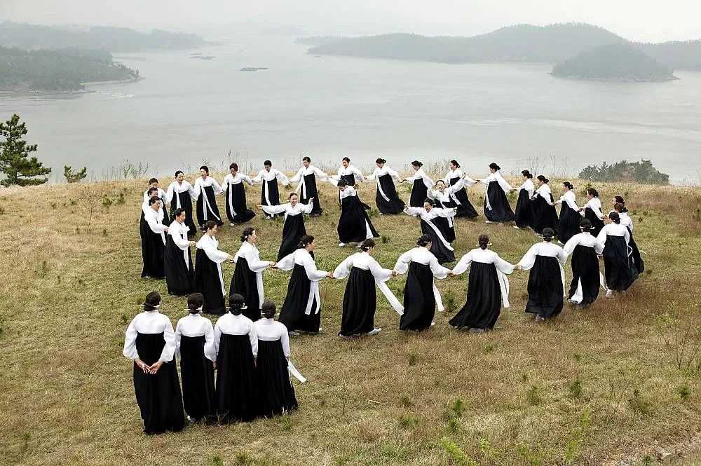 Under a bright full moon, dozens of unmarried young rural women form a circle, holding hands and singing and dancing all night long under the direction of the lead singer. During the breaks, the women playfully imitate small snippets reflecting the life of a farm or fishing village, including stepping on roof tiles, spreading out mats, catching mice, or tying herrings.