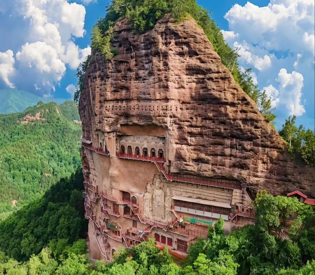 The World's Most Beautiful Grottoes 💗Maizishan Grottoes, Gansu A thousand-year-old treasure of Buddhist art set in steep red cliffs, more than 1,500 caves tell the story of the prosperity of the ancient Silk Road. It is recommended to hire a guide to learn the story of each cave in detail and feel the weight of history. Morning and evening light is perfect for taking photos.